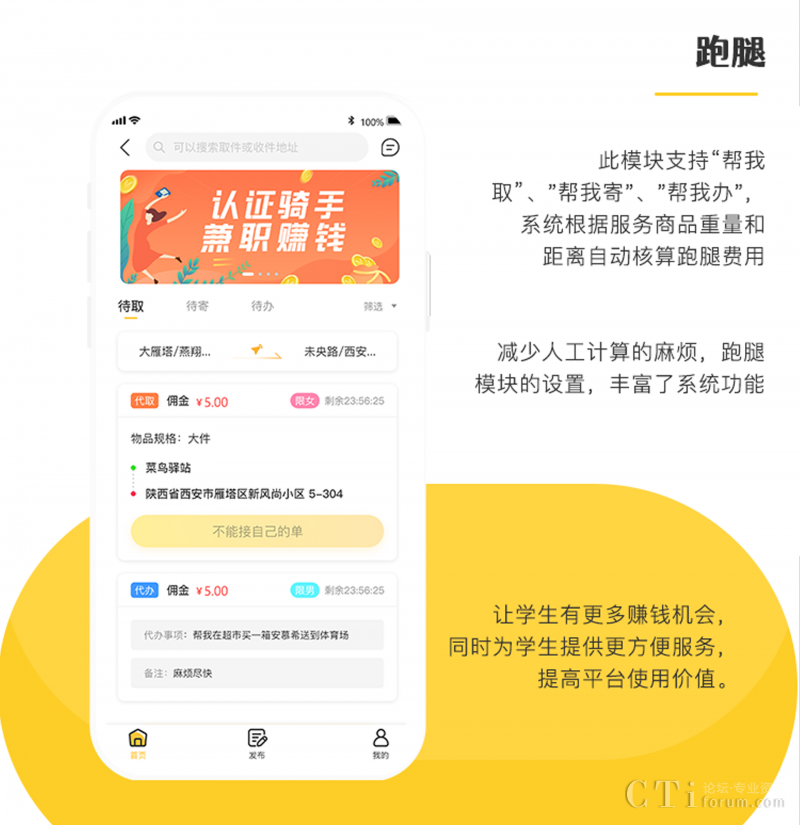 大家都知道,大學(xué)校園人群密集,很多大學(xué)的在校學(xué)生高達(dá)幾萬人,且大學(xué)生消費(fèi)力和消費(fèi)意愿均遠(yuǎn)高于一般人群,同時(shí)大學(xué)生代取快遞、代送外賣、代簽到等服務(wù)的需求很大,大學(xué)的跑腿服務(wù)市場是很大的。校園創(chuàng)業(yè)不僅需求旺盛,同時(shí)商家和用戶都有著高度聚集的特點(diǎn),針對校園學(xué)生群體,做校園外賣平臺(tái)值得推行。