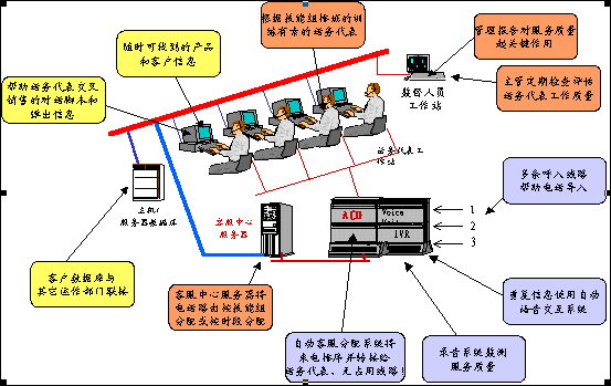 。。呼叫中心可以這樣定義,它是充分利用現(xiàn)代通訊與計(jì)算機(jī)技術(shù),如IVR(交互式語(yǔ)音應(yīng)答系統(tǒng))、ACD(自動(dòng)呼叫分配系統(tǒng))等等,可以自動(dòng)地處理大量各種不同的電話(huà)呼入和呼出業(yè)務(wù)和服務(wù)的運(yùn)營(yíng)操作場(chǎng)所。