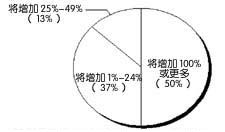 調(diào)查結(jié)果顯示,明年通信提供商的CRM支出仍將迅速增長(zhǎng)。80%的被調(diào)查者表示將增加對(duì)CRM方案的支出,10%的被調(diào)查者稱CRM預(yù)算將保持不變,另有10%的被調(diào)查者不知道CRM支出會(huì)如何變化。在80%計(jì)劃增加CRM支出的被調(diào)查者中,半數(shù)的CRM支出將增加100%或更多。另外13%的支出增長(zhǎng)在25%~49%之間。37%的被調(diào)查者將增加1%~24%的支出(見(jiàn)圖1)。