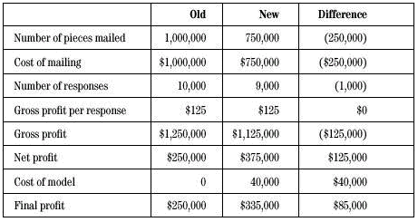 請注意,郵寄的純利潤增加了$125,000,甚至你扣除由于數(shù)據(jù)采集而產生的軟件、硬件即人力資源方面的$40,000,純利潤還增加了$85,000。建模的投入轉化成了200%的收益,這遠遠超過了BB&CC對這一項目的ROI要求。