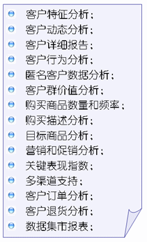 IQ等主流數(shù)據(jù)倉庫系統(tǒng)的無縫銜接,實現(xiàn)了CRM最核心的價值——多維度的客戶分析,從而在技術(shù)上和應用上遠遠超越了傳統(tǒng)的CRM。
