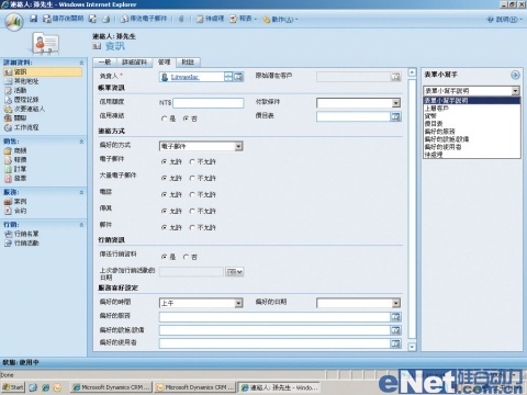 Dynamics CRM 4.0的聯(lián)絡(luò)人,除基本信息之外,還可以針對偏好的聯(lián)絡(luò)方式、活動(dòng)記錄、次要聯(lián)絡(luò)人或者商機(jī)管理等,儲(chǔ)存更詳細(xì)的記錄。