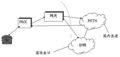 小企業(yè)的財力、物力有限,不可能大規(guī)模地?fù)碛凶约旱腣PN網(wǎng)絡(luò),此時實(shí)施IP電話的主要目的是為了節(jié)省昂貴的長途電話費(fèi)用,所以主要是實(shí)現(xiàn)呼出為主,呼入中繼由PSTN直接和PBX相連,PBX的呼出中繼則通過網(wǎng)關(guān)和PSTN、Internet直接互連,以優(yōu)選線路。這種配置,只需一個網(wǎng)關(guān)設(shè)備和少量的中繼線即可實(shí)現(xiàn)IP電話、傳真的功能,用最小的成本,節(jié)約了企業(yè)的長途電話、傳真費(fèi)用。