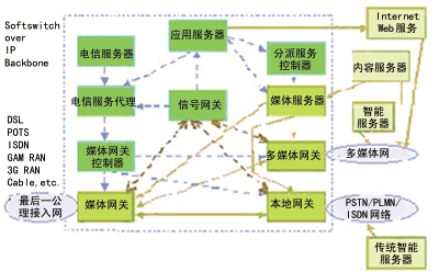 E1、DSL、Ethernet到無線接入技術(shù)GSM/GPRS、PHS、W-CDMA以至未來的接入技術(shù);支持與各種傳統(tǒng)電信業(yè)務(wù)網(wǎng)絡(luò)如PSTN和PLMN網(wǎng)絡(luò)以信令網(wǎng)節(jié)點方式互聯(lián),支持與IP業(yè)務(wù)網(wǎng)絡(luò)(如VoIP)和多媒體通信網(wǎng)絡(luò)(如Internet)互聯(lián);與接入網(wǎng)絡(luò)的信令和傳統(tǒng)業(yè)務(wù)網(wǎng)絡(luò)的信令(SS7)無縫互聯(lián);支持話音、遠(yuǎn)程會議、多媒體通信等基于會話的通信業(yè)務(wù);