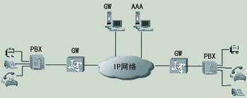 對(duì)于大多數(shù)的企業(yè)用戶,都擁有自己的用戶交換機(jī)PBX。在進(jìn)行IP電話網(wǎng)的建設(shè)中,這些PBX將被保留,繼續(xù)承擔(dān)起用戶接入的功能。而這些PBX之間的中繼連接都將通過IP骨干網(wǎng)來完成。這樣,既可以節(jié)約價(jià)格不菲的長(zhǎng)途中繼租用費(fèi),也避免了大規(guī)模的改造所帶來的浪費(fèi)。
