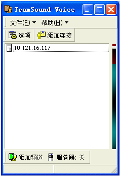 2.基本操作。開服務(wù)器,只需點擊一下“服務(wù)器:開”這個按鈕,你的機(jī)器就變成服務(wù)器了,很方便(注意要先設(shè)定默認(rèn)頻道)。加入你的戰(zhàn)友開了服務(wù),你要加入先點擊“添加連接”,在對話框中要輸入對方的IP和密碼,然后再“添加頻道,在局域網(wǎng)中,則直接“添加頻道”就ok了。