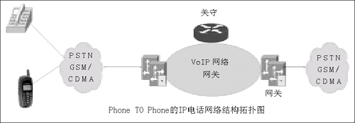 雖然從方式上看,IP話音業(yè)務(wù)包括了Phone TO Phone、PC TO Phone及PC TO PC三種方式,但是國內(nèi)主流的IP電話網(wǎng)絡(luò)仍然是以Phone TO Phone方式進行,其網(wǎng)絡(luò)拓?fù)浣Y(jié)構(gòu)如圖所示。