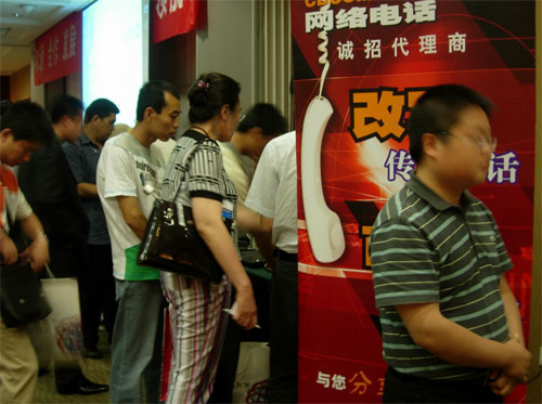 會上中寬網(wǎng)信余輝先生、王凱剛先生和李榮娟女士分別以“NGN軟交換業(yè)務(wù)發(fā)展趨勢和創(chuàng)業(yè)機(jī)會”、“中寬網(wǎng)信企業(yè)級解決方案”、“代理商與終端用戶系統(tǒng)平臺操作與使用”為題發(fā)表了演講,從各方面展示了中寬網(wǎng)信的優(yōu)勢和高速發(fā)展趨勢,同時上海迅時邱洪先生發(fā)表了“迅時通訊——引領(lǐng)技術(shù)未來”、國人陸寧先生發(fā)表了“國人通訊引領(lǐng)無線IP通訊未來”、派瑞符杰先生發(fā)表了“無線VOIP應(yīng)用級解決方案” 得到與會者的積極響應(yīng)。會議現(xiàn)場還展示了全球首款雙模手機(jī)(GSM/WiFi)、可視電話、迅時網(wǎng)關(guān)、國人無線IAD等高端產(chǎn)品,眾多與會者現(xiàn)場體驗(yàn)了相關(guān)產(chǎn)品的高質(zhì)量通話服務(wù),反響熱烈。