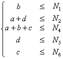 1, 2, …, 6) 表示第i個(gè)網(wǎng)關(guān)可以支持的最大呼叫數(shù)量,記通過(guò)鏈路A-C的最大呼叫數(shù)量為m, 則a, b, c, d和m滿足以下關(guān)系: