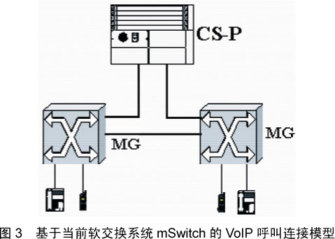 針對(duì)第一類的連接通話情況,可以用建立如下的通話連接模型,如圖3所示。該圖是整個(gè)軟交換系統(tǒng)的簡(jiǎn)化圖,具體的細(xì)節(jié)沒(méi)有描述。