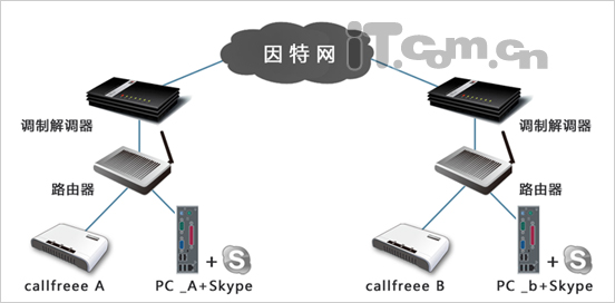 B通話以及PC A和PC B Skype通話效果. 這種情況下語音質(zhì)量已經(jīng)產(chǎn)生差別了,callfreee聲音質(zhì)量良好,語音延遲明顯增大但是還不操過1秒,