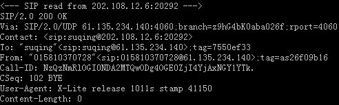 這時(shí)候,Asterisk PBX將被叫手機(jī)正在響鈴的信號以SIP消息 的形式發(fā)送到客戶端X-Lite,這是一種sip_indicate類型的SIP消