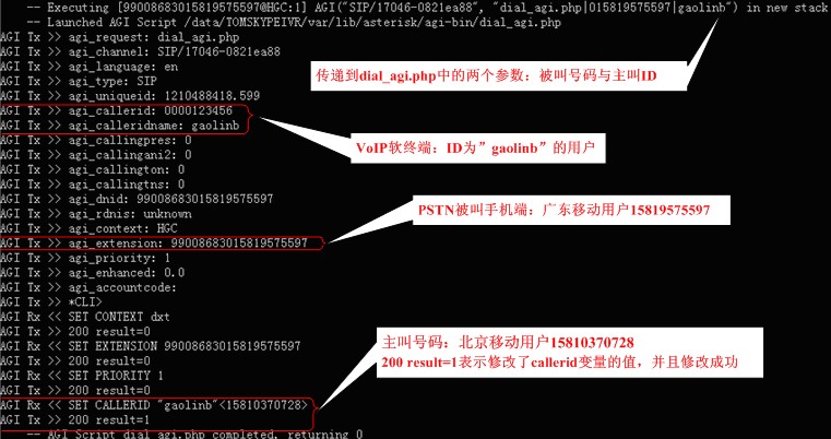 圖3 Asterisk服務器上AGI的輸入輸出信息