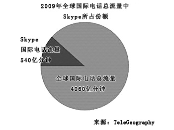 盡管全球的國(guó)際長(zhǎng)途電話呼叫量增長(zhǎng)在減緩,但是Skype的業(yè)務(wù)量卻急劇上升。2008年,Skype網(wǎng)內(nèi)用戶(hù)間的國(guó)際長(zhǎng)途呼叫量的增幅高達(dá)51%,2009年這一增幅達(dá)到63%,達(dá)到540億分鐘。如今,Skype已經(jīng)成為全球最大的跨境通話服務(wù)提供商。
