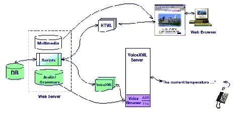 新的語音技術(shù)可以創(chuàng)建出對話驅(qū)動的應(yīng)用程序,例如語音識別技術(shù)(ASR),語音合成技術(shù)(TTS)以及記錄和回放數(shù)字化語音在 PC 和服務(wù)器(分發(fā)到客戶端設(shè)備)上 。Voice XML 提供了一種與技術(shù)無關(guān)的語言,可以用在語音應(yīng)用程序。這些應(yīng)用程序?qū)⒑蠖颂幚碚Z音的服務(wù)和處理機制與前端基于 Voice XML 的表示層分離開。例如,一個精心設(shè)計的 Web 站點可以輕而易舉地支持語音驅(qū)動的瀏覽器(比如您很可能在移動電話上會使用的那種),同時它有能支持其它的瀏覽器(比如一個 WAP 瀏覽器或 HTML 瀏覽器)。當接受到來自瀏覽器的最初請求時,服務(wù)器將監(jiān)測出瀏覽器的類型。如果瀏覽器被確認為一個語音瀏覽器,服務(wù)器將返回對應(yīng)的 Voice XML 頁面。