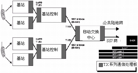 SS7也廣泛用作無(wú)線網(wǎng)和PSTN的接口信令,以及在不斷增加的無(wú)線網(wǎng)絡(luò)子系統(tǒng)之間。在GSM系統(tǒng)中,SS7還被用作基站控制中心(BSC)和移動(dòng)交換中心(MSC)之間的信令。