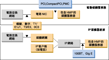 媒體服務(wù)器部署架構(gòu) IP網(wǎng)絡(luò) 基于包的IP網(wǎng)絡(luò)部署只需要以太網(wǎng)網(wǎng)絡(luò)接口。服務(wù)提供商正在向標(biāo)準(zhǔn)的100BASE-T和千兆位以太網(wǎng)轉(zhuǎn)移,作為互聯(lián)網(wǎng)主干服務(wù)和電信語音連接的主要接口。服務(wù)提供商正在部署媒體網(wǎng)絡(luò),以便使用IP語音(VoIP)將電路網(wǎng)絡(luò)語音流轉(zhuǎn)達換為基于以太網(wǎng)的基礎(chǔ)結(jié)構(gòu)。以太網(wǎng)的普遍性便利為標(biāo)準(zhǔn)的Web計算平臺以及臺式PC和便攜式PC配備以太網(wǎng)接口成為為要。因此,可以在包含HMP軟件的平臺上部署以太網(wǎng)電信媒體服務(wù)器,而不需要其它任何語音處理硬件。這些以太網(wǎng)網(wǎng)絡(luò)使基于以太網(wǎng)的電信媒體服務(wù)器可以為舊式電路客戶端和基于IP的客戶端提供語音媒體處理。 軟交換應(yīng)用 目前,同一類型的Web服務(wù)器平臺還用于軟交換應(yīng)用中的呼叫處理功能?梢酝ㄟ^在與軟交換相同的服務(wù)器平臺上運行的HMP,將電信媒體處理服務(wù)輕易地添加到這些網(wǎng)絡(luò)中。這種新類型的部署將取代目前所用的專用媒體處理平臺。 使用同構(gòu)硬件架構(gòu)的經(jīng)濟效益非常誘人。由于降低了備件成本、培訓(xùn)成本以及管理系統(tǒng)的集成成本,因此顯著降低了網(wǎng)絡(luò)服務(wù)提供商和企業(yè)服務(wù)提供商的總體擁有成本。此類部署還支持通過軟件升級新功能,從而加快了市場投放、縮短了創(chuàng)新周期。