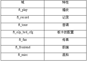 語音API函數(shù)。在語音API的頭文件dxxxlib.h中定義了用FEATURE_TABLE數(shù)據(jù)結(jié)構(gòu)中的某個參數(shù)代表的特性。FEATURE_TABLE結(jié)構(gòu)中的ft_tone字段包括一個位掩碼,它指出了一個特定的語音設(shè)備支持的音調(diào)特性。