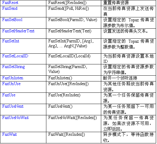 必須注意傳真資源只能收發(fā)傳真數(shù)據(jù),所有其他需要呼出或呼入電話的操作應(yīng)由中繼資源或媒體資源完成。