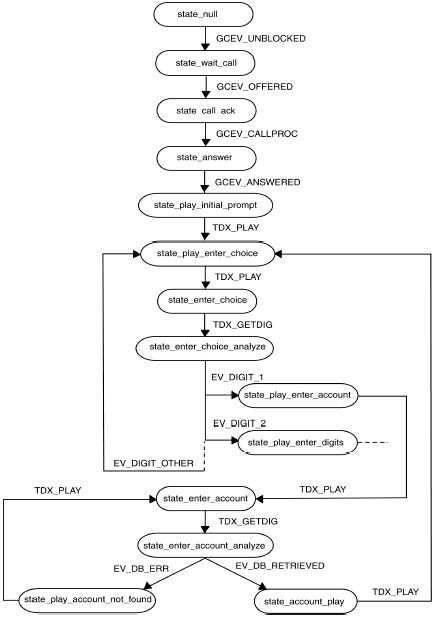 IVR參考程序(SimpleIvr)為想用R4和包括軟件開發(fā)包(SDK)的Global Call APIs 建立應用程序的Dialogic用戶提供了演示代碼。該應用程序用C++開發(fā),使用面向對象的方法允許增加新的組件及對已有組件的重用。SimpleIvr應用程序設計為單線程、異步,符合必要的性能需求,并使用了一些特殊的技術,比如線程池,來處理長時間的運轉。