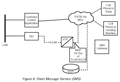 TCAP通過SS7網(wǎng)絡(luò)傳輸面向事務(wù)處理的數(shù)據(jù)并為諸如GSM-MAP和IS-41的應(yīng)用實(shí)施標(biāo)準(zhǔn)遠(yuǎn)程操作服務(wù)單元業(yè)務(wù)。這些"應(yīng)用"提供智能網(wǎng)絡(luò)業(yè)務(wù),比如歸屬位置寄存器或者短消息服務(wù)。